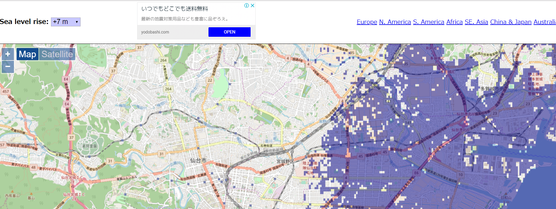 海面7メートルアップ、ここまで海水が侵入してきます。